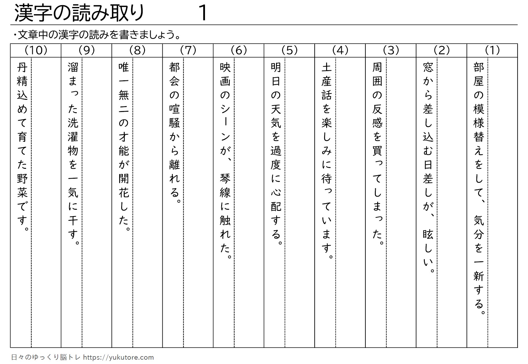 漢字の読み取りプリントです。