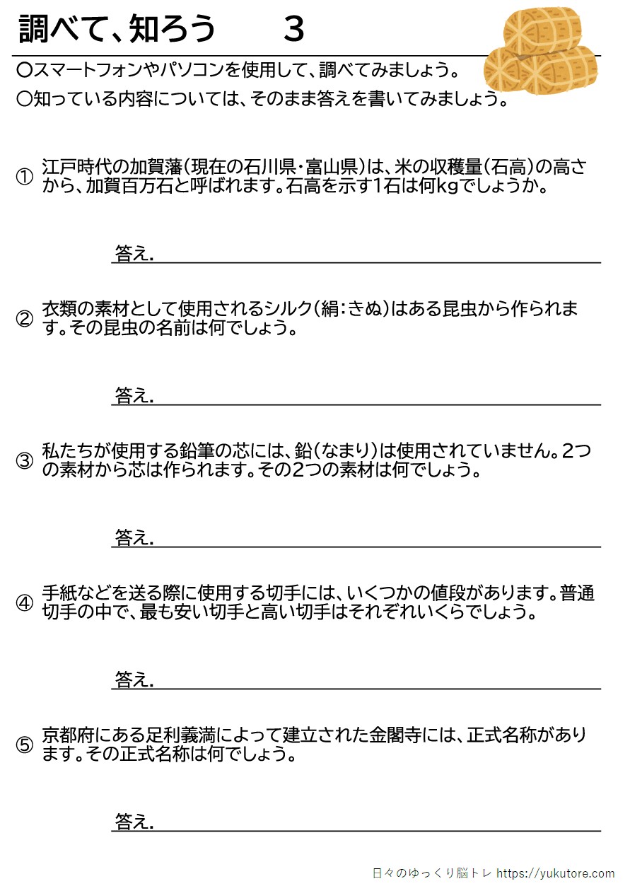 スマートフォンやパソコンで調べることを目的としたプリントです。