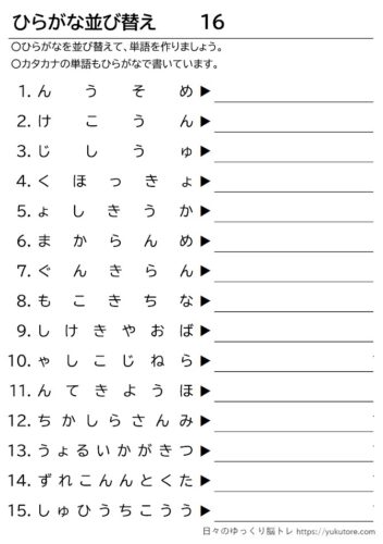 ひらなが並び替え(テーマなしの色々な言葉)の一覧