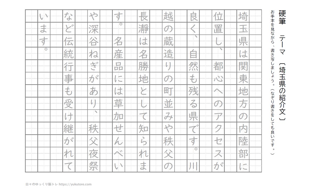 都道府県の紹介文:埼玉県 2026.01.082026.01.13 都道府県の紹介文:埼玉県 ダウンロード・印刷する ≪都道府県の紹介文一覧に戻る 最新の都道府県の紹介文プリント 都道府県の紹介文:埼玉県 2026.01.082026.01.13 都道府県の紹介文:長野県 2026.01.082026.01.13 都道府県の紹介文:山梨県 2025.12.132026.01.13 都道府県の紹介文:群馬県 2025.12.132026.01.13 都道府県の紹介文:栃木県 2025.11.282026.01.13